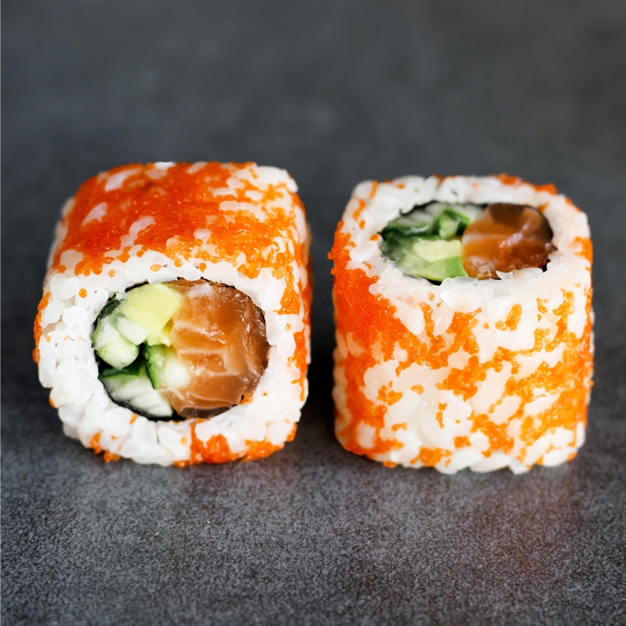 Вага: 205 гр. / 8 шт.Рис, норі, лосось, огірок, авокадо, ікра тобіко, імбир, васабі, соєвий соус.