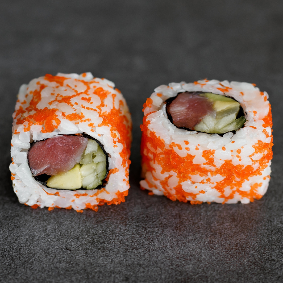 Вага: 205 гр. / 8 шт. Рис, норі, тунець, огірок, авокадо, ікра тобіко, імбир, васабі, соєвий соус.