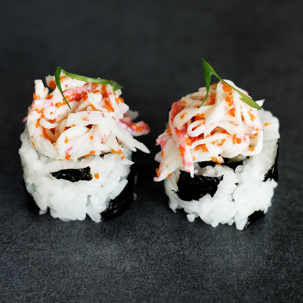 Вага: 280 гр. / 8 шт. Рис, норі, лосось well done, сир вершковий, салат айсберг, краб мікс, цибуля зелена, імбир, васабі, соєвий соус.